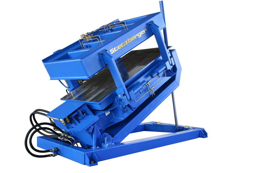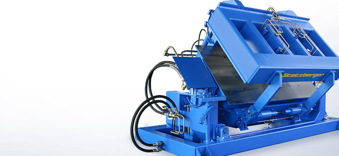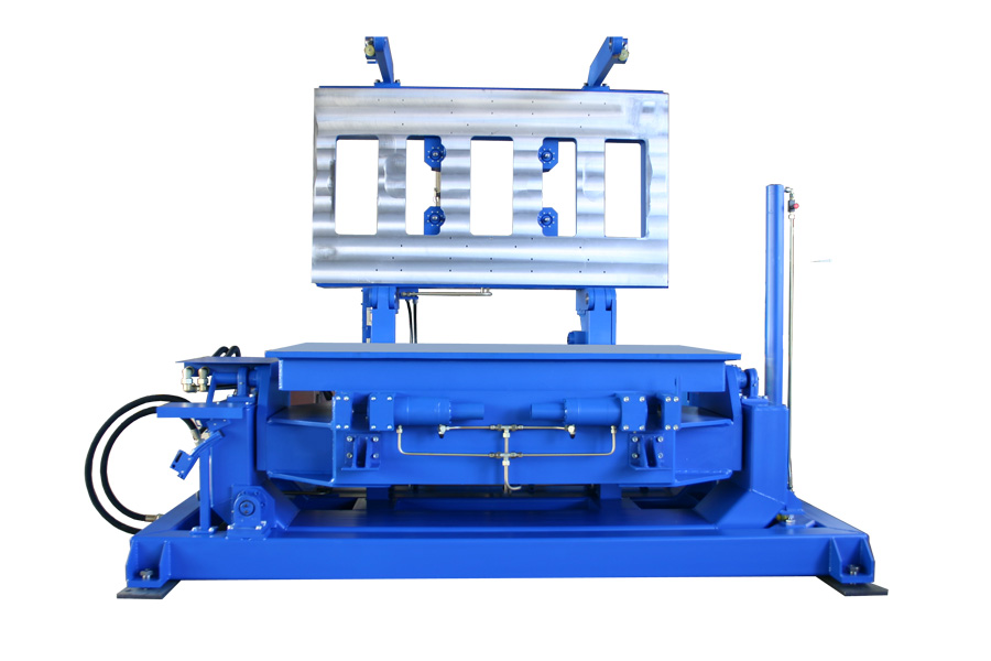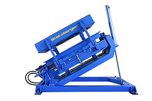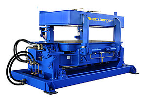 Der Formenträger arbeitet vollhydraulisch, er ist ausgerüstet mit einer Zweihand-Bedienung, der dazugehörigen Steuerung mit Hydraulikaggregat.